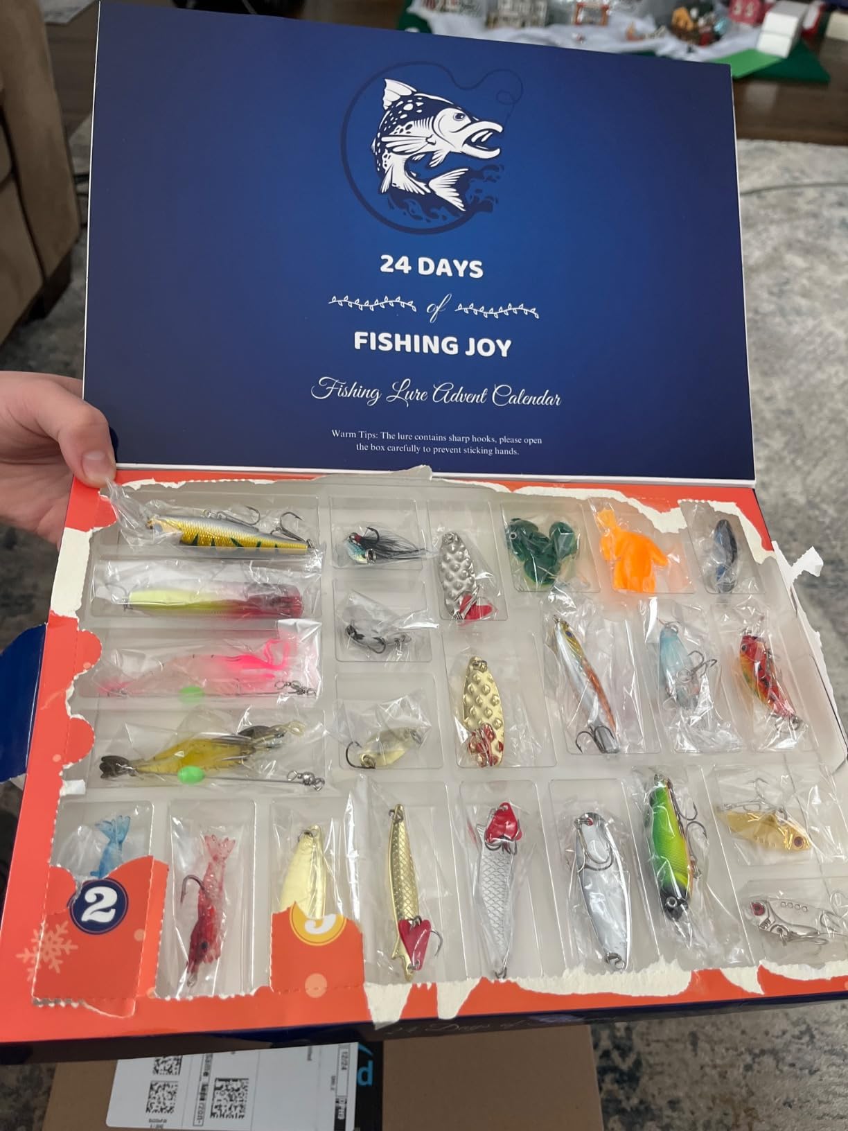 The calendar includes a variety of fishing accessories like hooks, lures, small tools, and exclusive items that you won’t find anywhere else. It’s perfect for both beginners and seasoned anglers!